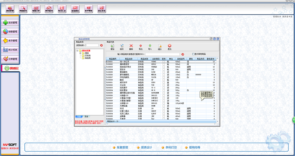美萍超市管理系统是一款专业的超市管理软件,其中包含超市商品业务管理系统 ,超市库存管理系统(超市仓库管理系统),超市收银系统等子模块。软件界面设计简洁,美观,其人性化的软件流程,使普通用户不需培训也能很快掌握软件操作使用方法,上手极易。强大报表与集成查询功能是本软件的更大特色,所有功能在用户需要的使用地方自然体现,不用打开多个窗口重复查询。美萍超市管理软件广泛适用于商场,超市,门店等用于超市进销存管理, 库存管理,财务管理,收银管理,员工管理等场合,是您企业进行信息化管理的强大工具。