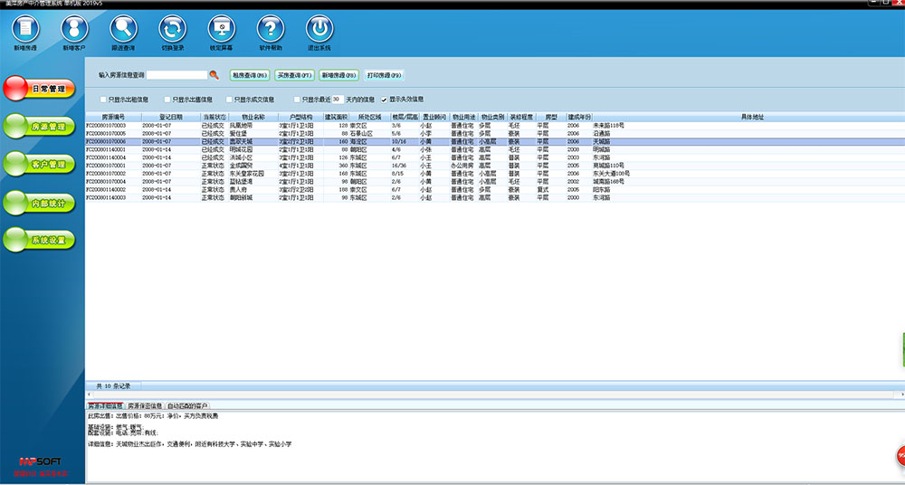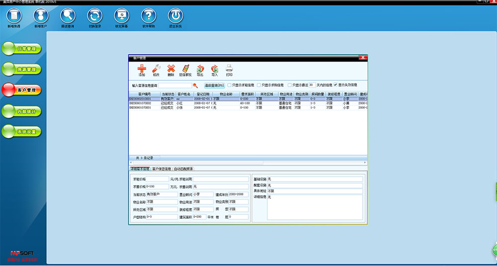 美萍房产中介管理软件是美萍公司推出的一款专业的房地产中介管理系统,它集房源管理、客户管理、业务管理、出租管理,统计分析等强大功能为一身,软件界面简洁优美,操作直观简单,无需专门培训即可正常使用。美萍房产中介管理系统能广泛适用房介经营商、地产代理商等房屋中介业务出租机构使用。美萍房屋中介管理软件是您加强房源管理、客户管理,员工管理,提高工作效率的强大助手。