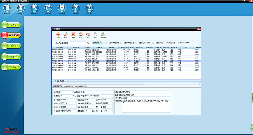 美萍正版房产中介客户erp管理系统房源销售出租软件公寓厂房宿舍