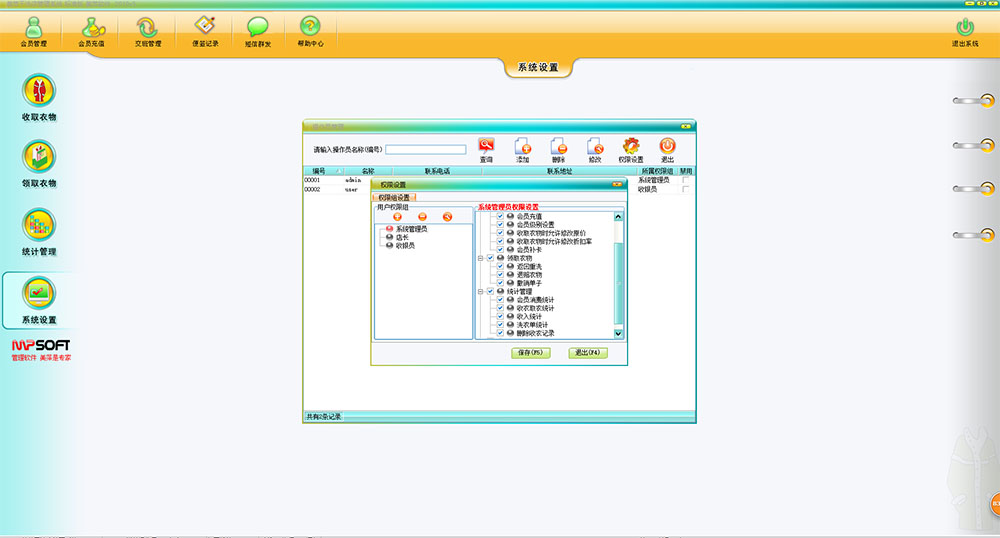 美萍干洗店管理系统是一款专业的洗衣店管理软件,它集前台收费收银系统,会员卡管理系统,财务报表系统等强大功能为一身,系统界面简洁优美,操作直观简单。美萍洗衣店管理系统为广大干洗店,洗衣店提供了成本分析,利润分析,洗衣流程管理等诸多功能,用全新的经营理念,将干洗店经营者和消费者、经营管理和服务有效地融合在一起,建立起规范的经营模式,提高您在行业中的管理档次和服务水平,使您在激烈的竞争中轻松胜出。