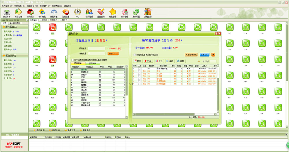 美萍茶楼管理系统收银软件棋牌室计时计费收费麻将馆咖啡厅KTV