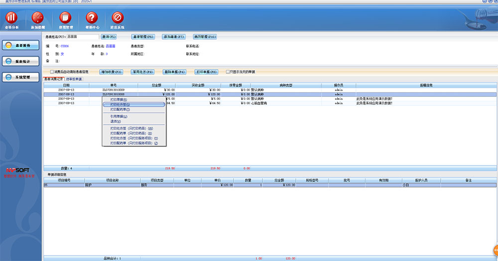 美萍诊所管理软件是一款专业的医疗门诊管理系统。它包含医药进销存管理系统,药品库存管理系统,药店业务收银系统,门诊收费管理系统等子模块。是针对我国众多中小诊所,门诊部而特别设计,量身定做的一款管理软件,软件界面设计简洁,美观,其人性化的软件流程,使普通用户不需培训也能很快能上手操作使用,美萍诊所管理系统涵盖了医疗诊所日常管理的各个方面,是您提升企业形象,增加营业收入,提高顾客满意度的强大信息化工具。